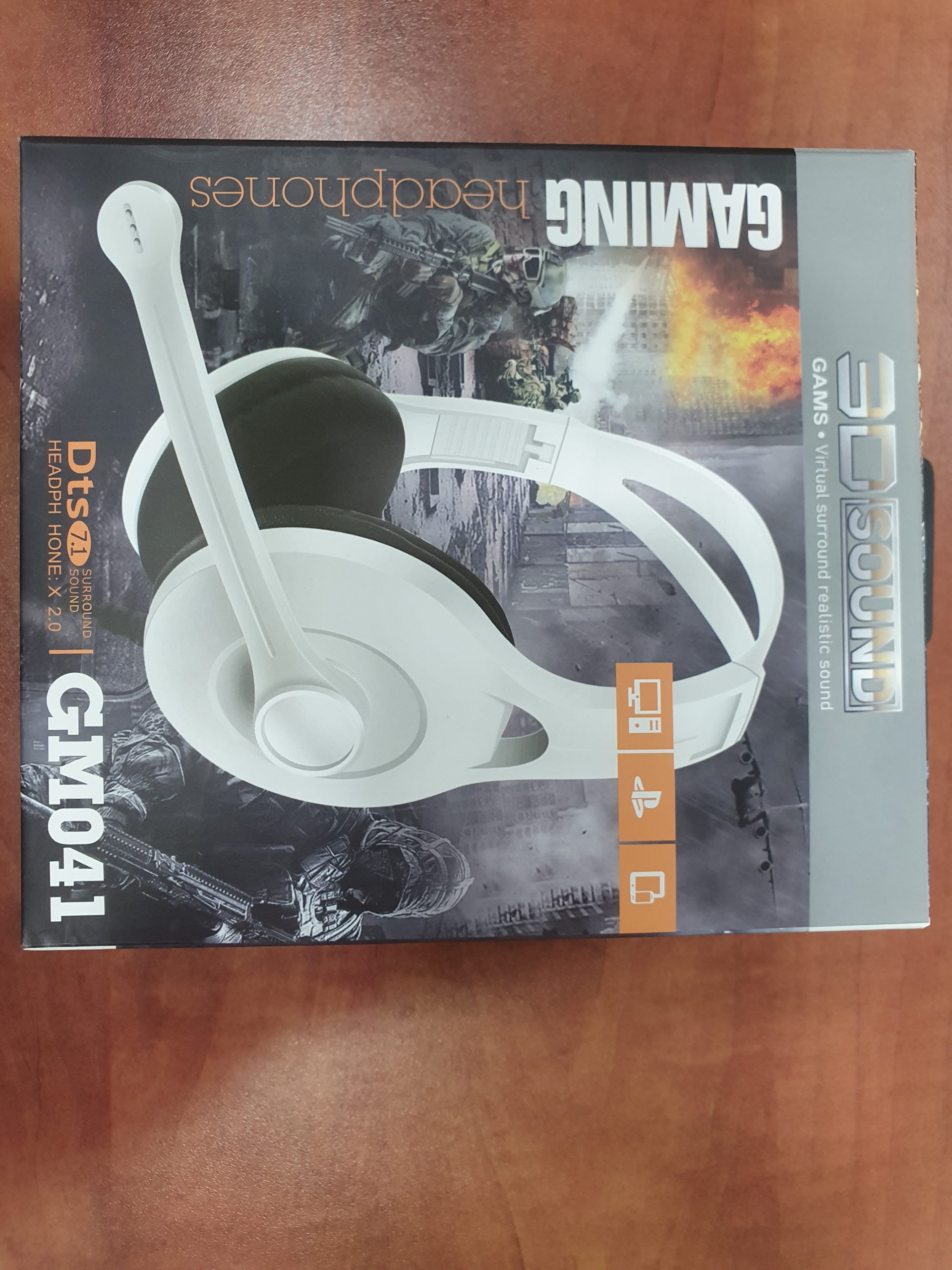 אוזנייה גיימינג חוטית GM041. צבע לבן עם מיקרופון -נוחה מאד –