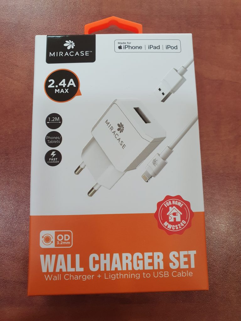 מטען קיר MIRACASE +ligthning מתאים לאייפון -אייפד -אייפוד.