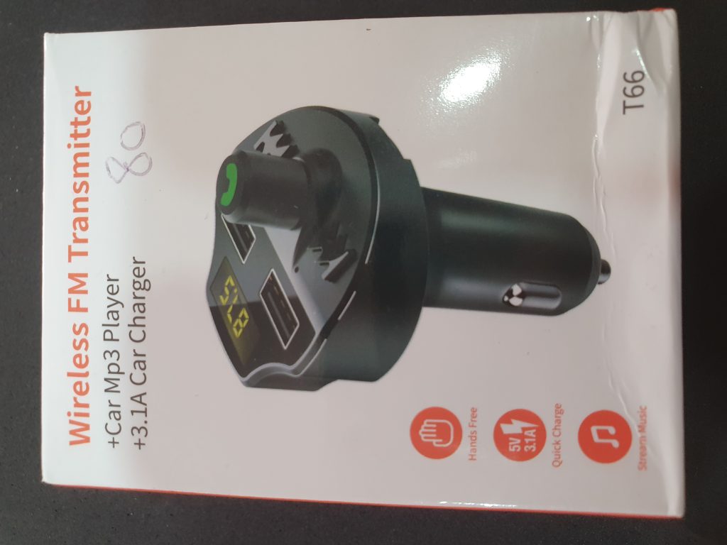 משדר FM אלחוטי לרכב T66. משדר 5.0 נגן MP3 . הפחתת רעשים .תומך כרטיס זכרון . מטען USB כפול .